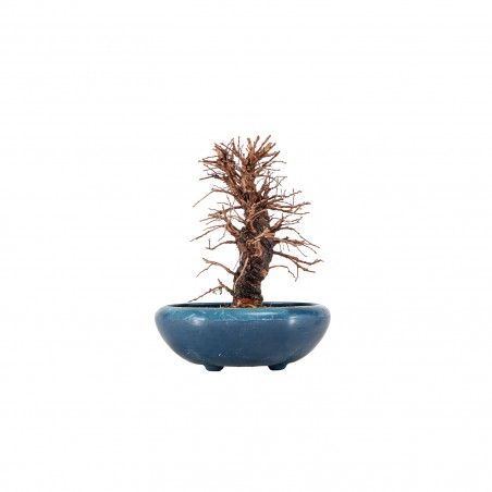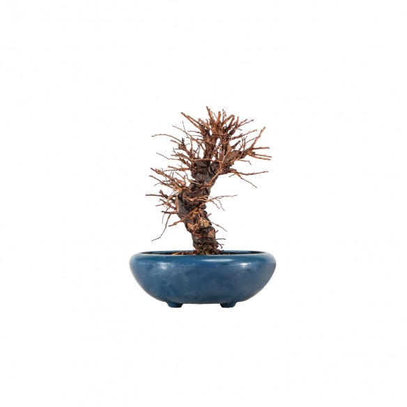 Originaria de Asia, Zelkova nire es una especie caducifolia muy apreciada en bonsái por su porte elegante, tronco bien definido y ramificación fina y densa. Sus hojas pequeñas y aserradas aportan una textura delicada, mientras que la silueta equilibrada ofrece un aspecto natural y refinado durante todo el año.