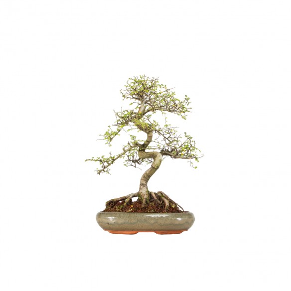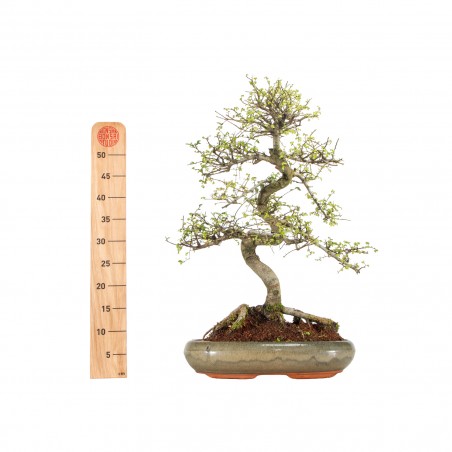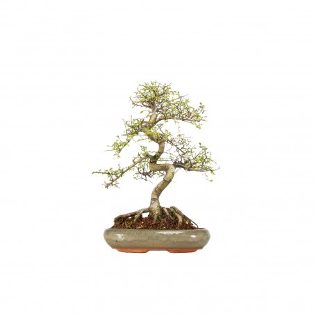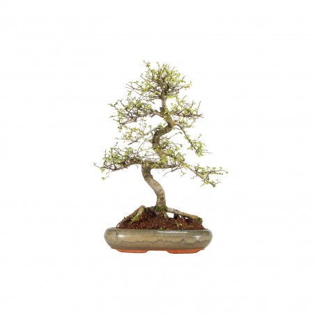 Originaria de Asia, el Ulmus parvifolia es una especie caducifolia muy apreciada en bonsái por su crecimiento vigoroso, ramificación fina y excelente capacidad de rebrote. Sus hojas pequeñas y aserradas aportan una textura delicada, mientras que el tronco puede desarrollar carácter y movimiento con el tiempo.