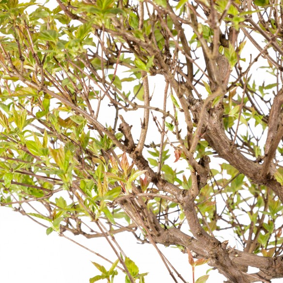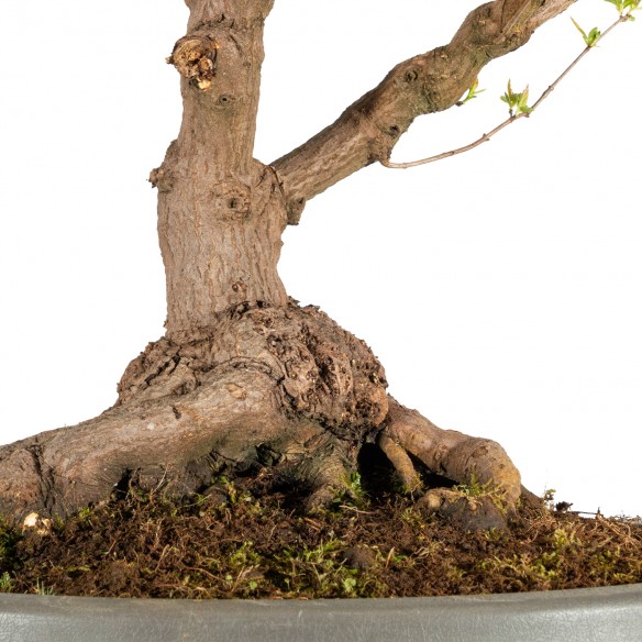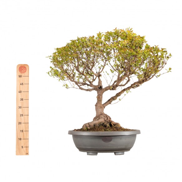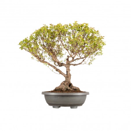 Originaria de Asia, el Acer ginnala es una especie caducifolia muy apreciada en bonsái por su porte elegante, ramificación fina y extraordinaria coloración otoñal. Sus hojas pequeñas y trilobuladas aportan una textura delicada durante la temporada de crecimiento y se transforman en intensos tonos rojos y anaranjados en otoño, su principal atractivo ornamental.