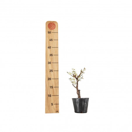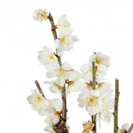 Originaria de Asia, Prunus mume es una especie muy apreciada en bonsái por su floración temprana y perfumada, que aparece a finales del invierno. Sus ramas elegantes y la corteza con carácter que se acentúa con la edad aportan gran interés ornamental, especialmente cuando el árbol florece antes de que aparezcan las hojas.