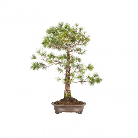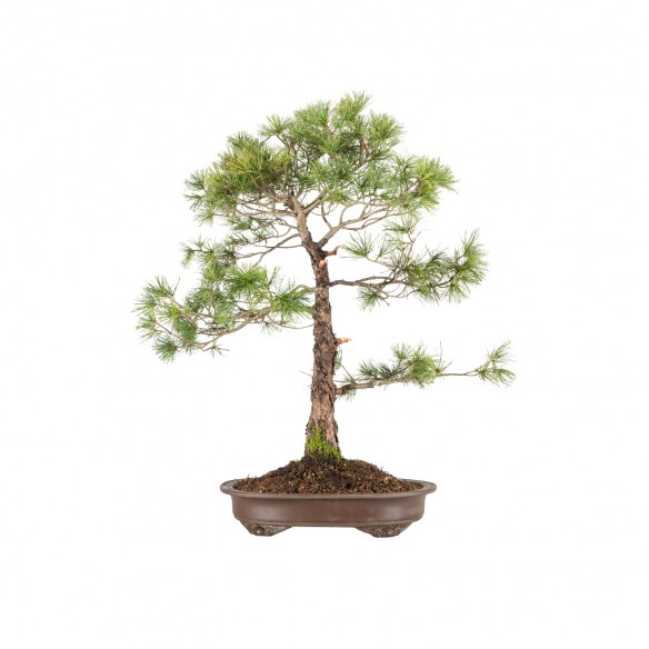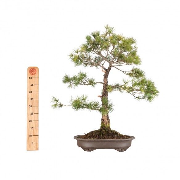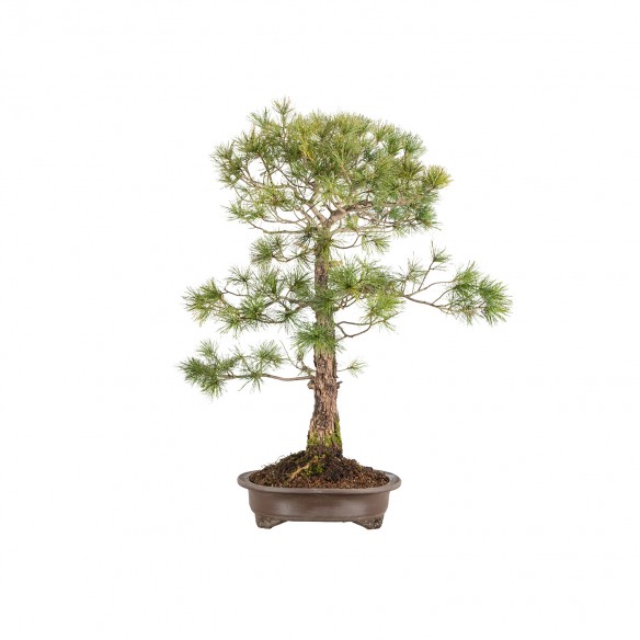 Originario de Asia, el Pinus parviflora es una especie muy apreciada en bonsái por su porte compacto, tronco elegante y agujas cortas y delicadas. El árbol desarrolla una silueta equilibrada con fuerte carácter ornamental, siendo muy valorado en estilos clásicos e informales.