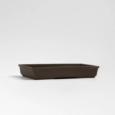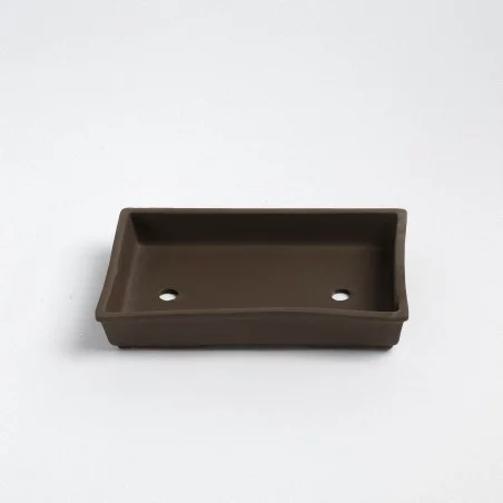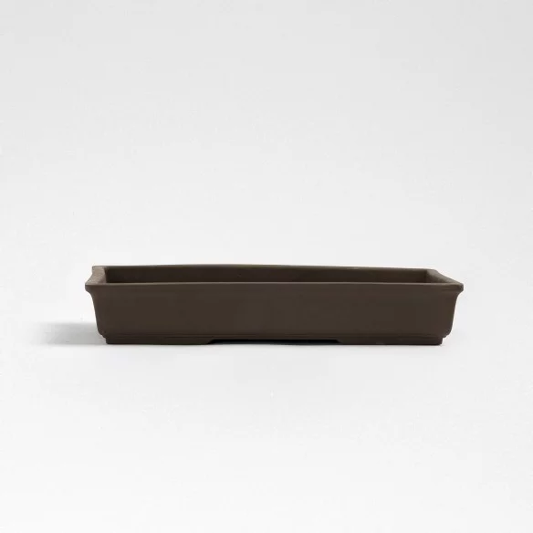 Maceta japonesa artesanal para bonsái, originaria de Yokkaichi, una región reconocida por su excelencia en la cerámica tradicional. Cada pieza está moldeada a mano con arcilla Banko, rica en hierro, y cocida a altas temperaturas, garantizando resistencia al calor y a las inclemencias del tiempo.
