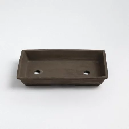Maceta japonesa artesanal para bonsái, originaria de Yokkaichi, una región reconocida por su excelencia en la cerámica tradicional. Cada pieza está moldeada a mano con arcilla Banko, rica en hierro, y cocida a altas temperaturas, garantizando resistencia al calor y a las inclemencias del tiempo.