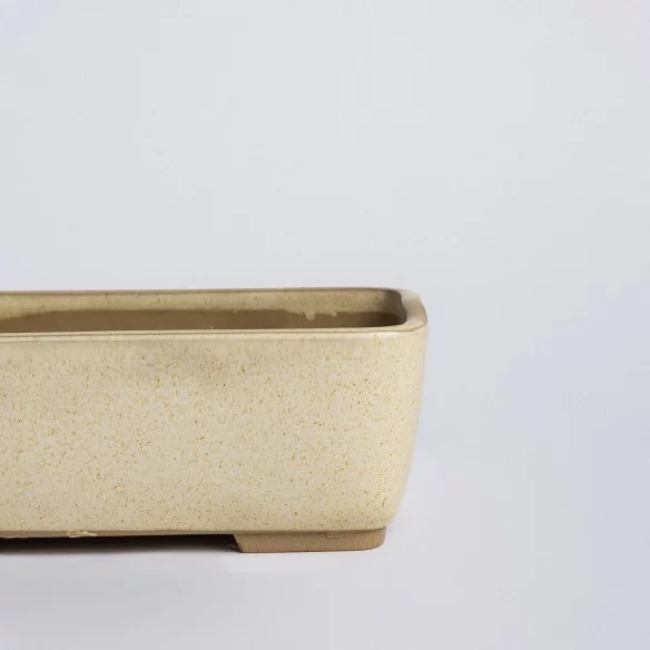 Maceta japonesa artesanal para bonsái, originaria de Yokkaichi, una región reconocida por su excelencia en la cerámica tradicional. Cada pieza está moldeada a mano con arcilla Banko, rica en hierro, y cocida a altas temperaturas, garantizando resistencia al calor y a las inclemencias del tiempo.