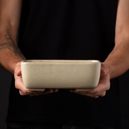 El riguroso trabajo artesanal, unido a la meticulosa atención al detalle, da como resultado macetas de formas equilibradas y acabado refinado, con texturas y tonalidades únicas. Cada pieza realza el carácter singular de su bonsái, combinando tradición, funcionalidad y estética.