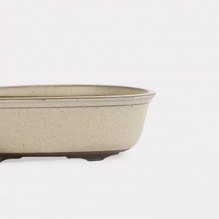 Maceta japonesa artesanal para bonsái, originaria de Yokkaichi, una región reconocida por su excelencia en la cerámica tradicional. Cada pieza está moldeada a mano con arcilla Banko, rica en hierro, y cocida a altas temperaturas, garantizando resistencia al calor y a las inclemencias del tiempo.