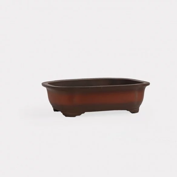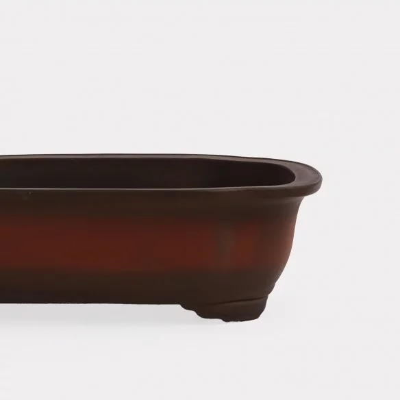 Maceta japonesa artesanal para bonsái, originaria de Yokkaichi, una región reconocida por su excelencia en la cerámica tradicional. Cada pieza está moldeada a mano con arcilla Banko, rica en hierro, y cocida a altas temperaturas, garantizando resistencia al calor y a las inclemencias del tiempo.