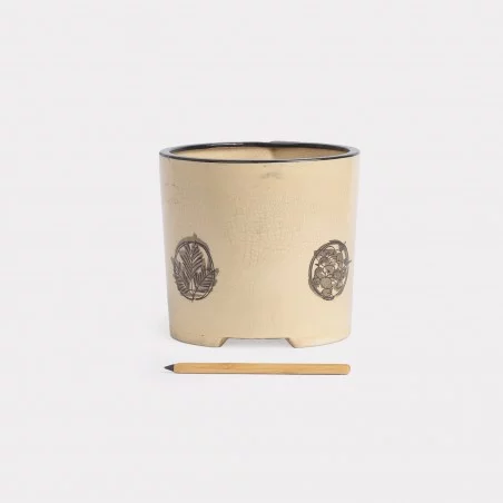 Maceta japonesa artesanal para bonsái, originaria de Yokkaichi, una región reconocida por su excelencia en la cerámica tradicional. Cada pieza está moldeada a mano con arcilla Banko, rica en hierro, y cocida a altas temperaturas, garantizando resistencia al calor y a las inclemencias del tiempo.