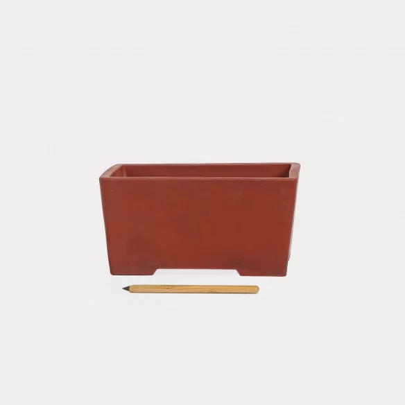 Maceta japonesa artesanal para bonsái, originaria de Yokkaichi, una región reconocida por su excelencia en la cerámica tradicional. Cada pieza está moldeada a mano con arcilla Banko, rica en hierro, y cocida a altas temperaturas, garantizando resistencia al calor y a las inclemencias del tiempo.