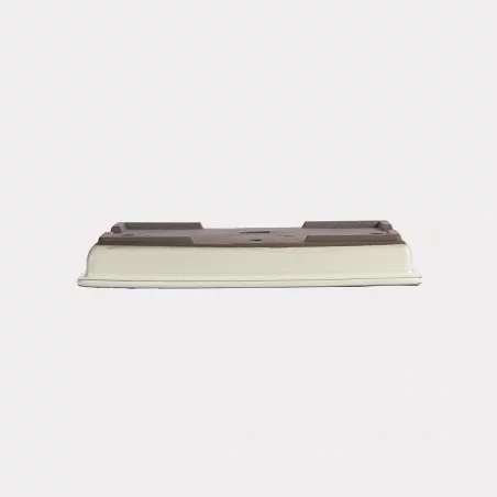 Maceta japonesa artesanal para bonsái, originaria de Yokkaichi, una región reconocida por su excelencia en la cerámica tradicional. Cada pieza está moldeada a mano con arcilla Banko, rica en hierro, y cocida a altas temperaturas, garantizando resistencia al calor y a las inclemencias del tiempo.