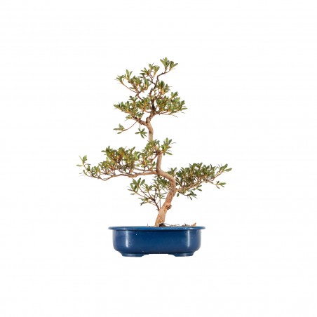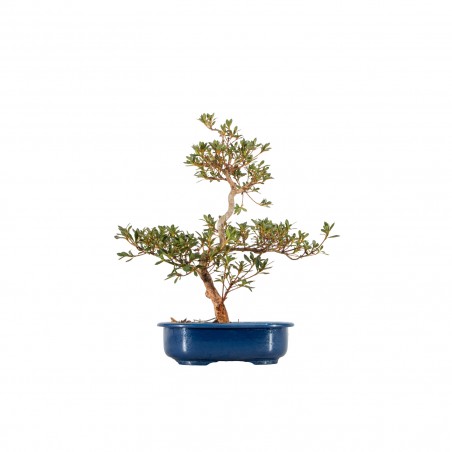 Originaria de Asia, la Azalea satsuki ‘Yoko’ es una variedad muy apreciada en bonsái por su porte compacto, ramificación fina y floración delicada y equilibrada. Sus hojas pequeñas de color verde oscuro forman una base densa y armoniosa, mientras que las flores elegantes aportan un alto valor ornamental en primavera.
