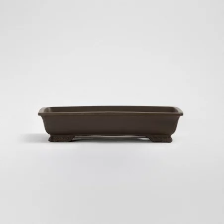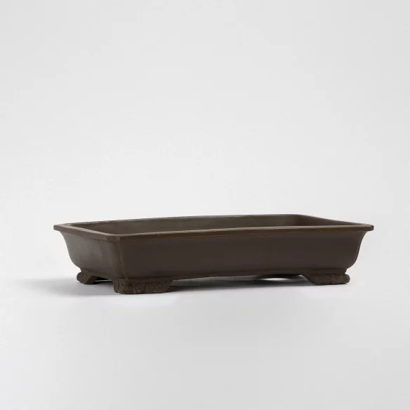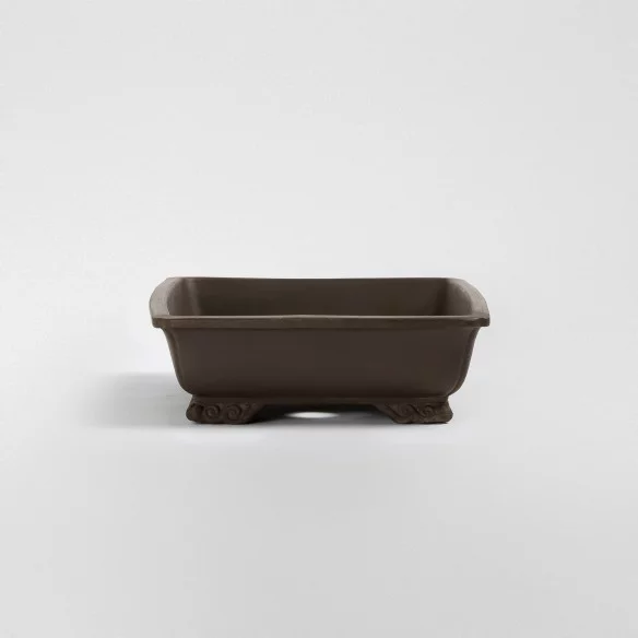 Japanese artisanal bonsai pot, originating from Yokkaichi, a region renowned for its traditional ceramic excellence. Each piece is handcrafted from Banko clay, rich in iron, and fired at high temperatures, ensuring resistance to heat and the elements.