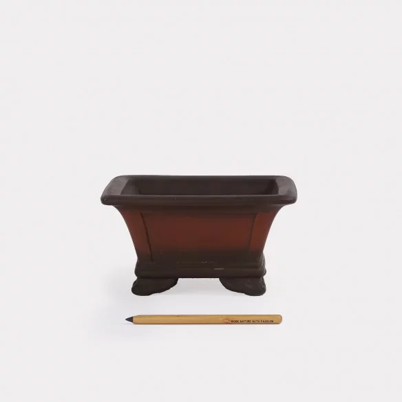 Japanese artisanal bonsai pot, originating from Yokkaichi, a region renowned for its traditional ceramic excellence. Each piece is handcrafted from Banko clay, rich in iron, and fired at high temperatures, ensuring resistance to heat and the elements.