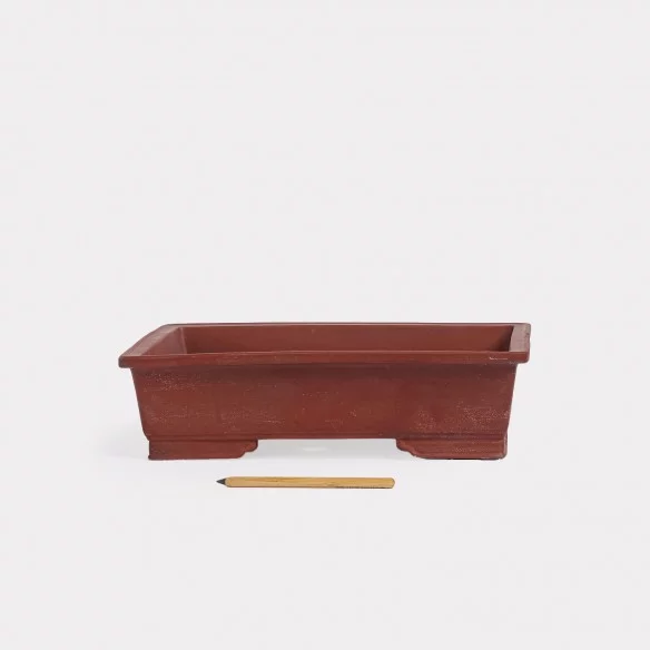 Japanese artisanal bonsai pot, originating from Yokkaichi, a region renowned for its traditional ceramic excellence. Each piece is handcrafted from Banko clay, rich in iron, and fired at high temperatures, ensuring resistance to heat and the elements.
