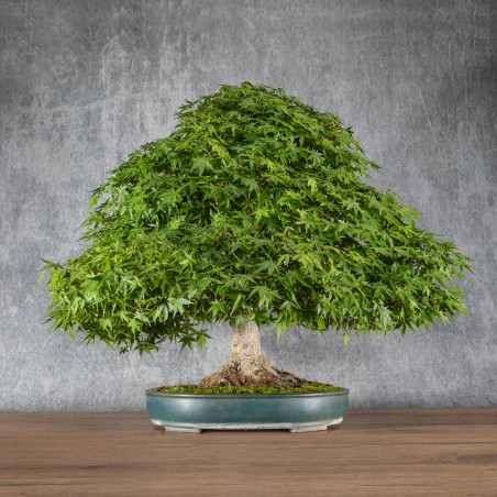 Originário da Ásia, o Acer palmatum ‘Yamamomiji’ é uma espécie muito apreciada no bonsai pela sua silhueta natural, ramificação elegante e forte expressão sazonal. As folhas finamente lobadas apresentam variações cromáticas marcantes ao longo do ano, com destaque para as cores outonais intensas.