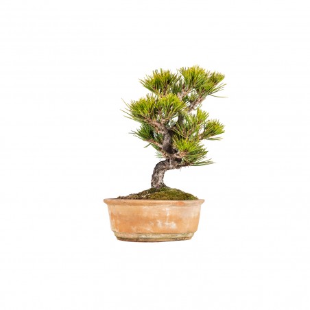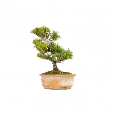 Originário da Ásia, o Pinus thunbergii é uma espécie muito apreciada no bonsai pelo seu vigor, tronco robusto e forte caráter visual. As agulhas longas e rígidas, de tom verde-escuro, conferem uma presença marcante, enquanto a casca fissurada ganha textura e maturidade com a idade.